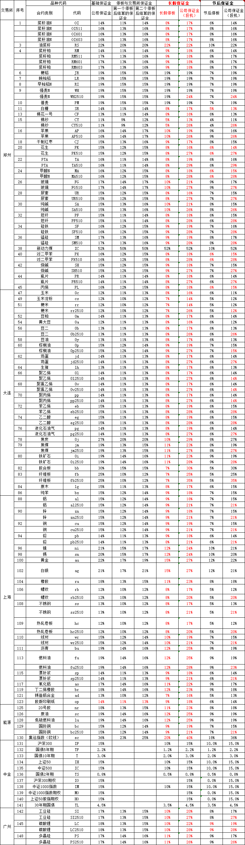 郑商所:关于2025年国庆节、中秋节期间调整部分期货合约交易保证金标准和涨跌停板幅度的通知